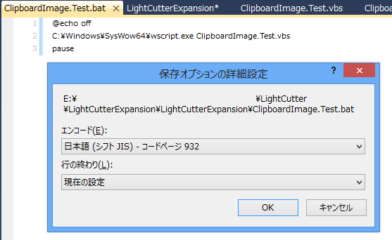 では早速、バッチファイルを実行して、作成したCOMクラスをテストしてみます。今回は画像をクリップボードにコピーしてからテストする必要があるので、既存の LightCutter で画面を切り取ってからバッチファイルを実行しました。無事、デスクトップにファイルが保存されました。