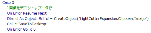 準備が出来たら、いよいよメインのメソッドを追加します。今回は、非常にシンプルに、「クリップボードの画像をデスクトップに PNG 画像として保存する」メソッド SaveToDesktop を追加しました。